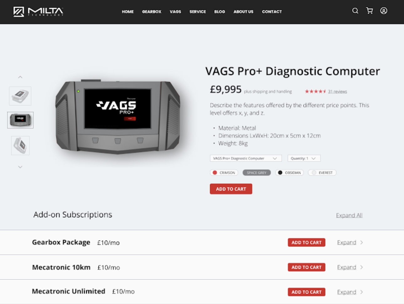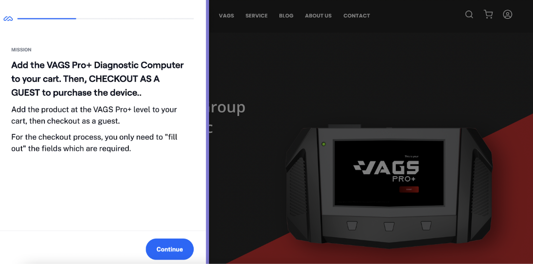 Adding the VAGS Pro+ computer to their cart and checking out as a guest.